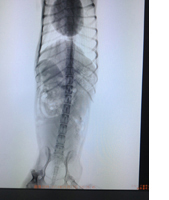 先月のこと散歩途中にいつもの通りボール遊びをしていました。ボールを投げては咥えて走って戻ってきます。何度か繰り返していた次の瞬間、走っている途中に『キャン!』という声とともに腰が落ち、後の脚が伸びて動かせない彼女の姿がありました。一瞬、何が起きたのか判らず彼女のもとに走って行くと、とてもつらそうな声で鳴きながら、上手く使えない体を必死に動かそうとしていました。私自身、股関節を脱臼したのか?骨折したのか?初めてのことで彼女を見る限りでは全く判りません。直ぐに病院に連れていき診察を受けました。診断は腰椎の椎間板ヘルニア。