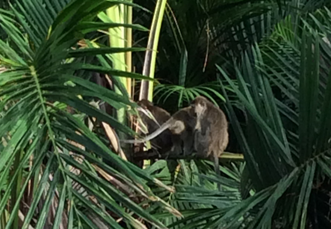 午後は予め予約をしていたジャングルリバークルーズに参加しました。絶滅危惧種のテングザルや水オオトカゲなど野生動物をの見学に行くツアーで、夜には木いっぱいのホタルを観ることができます。日中は川の中をボートで進みながら野生のテングザル、カニクイザル、2m級の水オオトカゲを観ることができて大満足。その後夕食を済ませた後に真っ暗な川の中を同じようにボートでホタルを観に行きます。ホタルは風が吹くと少なく、雨が降るとほぼ観ることができないらしいのですが、夕食の時から何やら怪しき風が吹き出し、いやーな感じの雲が空を覆ってきていました。案の定ボートに乗り込む時には、弱い雨がぽつぽつ。今回の私にはどうやら雨が付きまとっているようです。