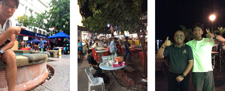 6日目クアラルンプールに移動です。昼間は現地のマーケットなどでお買い物をしてウォーターフロントでビールをいただきました。何とこの日も曇っていて時々雨が降る天気。『やっぱりついていないのかなぁ』と思いながら夕方クアラルンプールに向かいました。クアラルンプールの空港からはモノレール、電車を利用し繁華街の中のビジネスホテルにチェックイン。着いた時間は夜10時、ホテルの前は屋台街で道いっぱいに人がごった返していました。チェックイン後はその屋台に繰り出しディナーをいただき、その近隣の朝方まで空いているバーやクラブで遅くまでお酒を飲んで楽しみました。